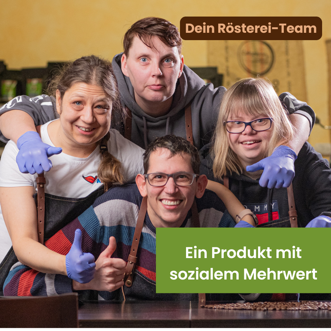 Seit 2017 betreiben wir unsere eigene Rösterei in Osterode am Harz. Unsere Beschäftigten sind aktiv in den gesamten Produktionsprozess eingebunden: Sie überwachen die Rösttemperatur, lesen Bohnen sorgfältig aus, etikettieren und verpacken jede Tüte von Hand. Kein Fließband, kein Durchlauf. Echte Handarbeit, die man auch schmeckt.